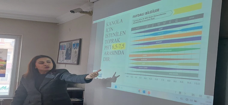 Toprak pH’ının önemine de vurgu yapan Oral, “Trakya’da ektiğiniz buğday, kanola ve ayçiçeğinin istediği pH düzeyi 6.5 ile 7.5 arasındadır. pH bizim için çok önemli. Düzgün bir üretim sağlayıp kaliteli bir ürün elde edebilme potansiyeli pH ile yakından ilişkilidir” bilgisini verdi.