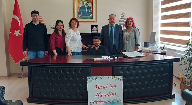 Türkiye Sakatlar Derneği Çerkezköy Şube yönetimi Engelliler Haftası dolayısıyla düzenlediği etkinlikler kapsamında hayalleri olan şube üyelerinin de hayallerinin gerçekleştirmelerinde yardımcı oldu. Dernek üyesi 22 yaşındaki Yusuf Örs küçüklüğünden beri kaymakam olmayı hayal ettiğini ve kaymakam koltuğunda kısa sürede olsa oturmayı çok arzu ettiğini dernek yönetimine bildirdiğini belirten Dernek başkanı Gülnur Kocaçınar, “Derneğimiz üyesi tüm çocuklarımız bizim ikin çok özeldir. Onların isteklerini yerine getirmek ve onların mutlu olmalarını sağlamak için elimizden ne geliyorsa en iyisini yapmaya özen gösteriyoruz. Yusuf kardeşimizin de hayali kaymakam olmakmış bizde engelliler haftası dolayısıyla bu güzel kalpli cıvıl cıvıl hayat dolu gencimizin hayalini gerçekleştirmek için ilçe kaymakamımız Murat Duru’dan randevu talep ederek ziyaretinde bulunduk. Bizleri çok samimi bir şekilde karşılayan kaymakamımız bizlerle ve kaymakam olma hayali olan Yusuf Örs kardeşimizle yakından ilgilendi. Yusuf Örs, kaymakam koltuğuna oturduğunda bir kaymakam gibi sorulan sorulara cevap vermesi ise ayrı bir anlam taşıdı” dedi. Yusuf Örs ise “Bugün sayın ilçe kaymakamımız Murat Duru’nun beni makamına oturtturarak ‘Misafirim olduğunuz şu dakikadan itibaren kaymakam sizsiniz’ demesi kısa sürede olsa o koltukta oturmam beni çok mutlu etti. Hayalim olan kaymakamlığın inanılmaz ve tarif edilmez şekilde mutluluğunu yaşadım” dedi.