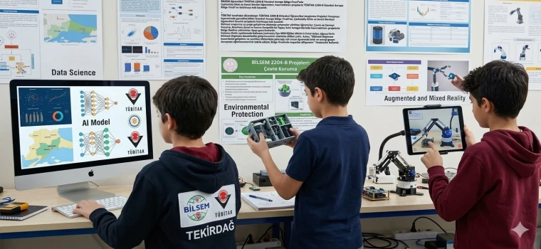 Bilimsel araştırma ve proje geliştirme alanında çalışmalar yürüten öğrenciler; Çevre ve Çevreyi Koruma, Artırılmış Gerçeklik, Sanal Gerçeklik, Karma Gerçeklik ve Yapay Zekâ kategorilerinde hazırladıkları projelerle bölge finaline yükselerek ilçeyi gururlandırdı.