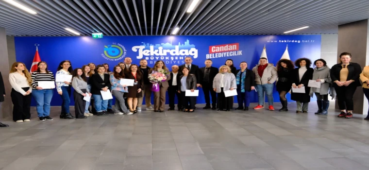 Büyükşehir Belediyesi Ana Hizmet Binası’nda düzenlenen sertifika törenine; Tekirdağ Büyükşehir Belediye Başkanı Dr. Candan Yüceer, Tekirdağ İl Millî Eğitim Müdürlüğü Hayat Boyu Öğrenme Şube Müdürü Hasan Hüseyin Elverişli ve Süleymanpaşa Halk Eğitim Merkezi Müdürü Erdem Zeray katıldı.