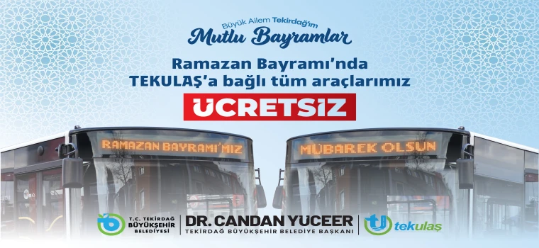 Tekirdağ Büyükşehir Belediyesi’ne bağlı olarak faaliyet gösteren TEKULAŞ otobüsleri, bayram ziyaretlerinin daha rahat gerçekleştirilebilmesi ve şehir içi trafiğin azaltılması amacıyla üç gün boyunca ücretsiz olacak.
